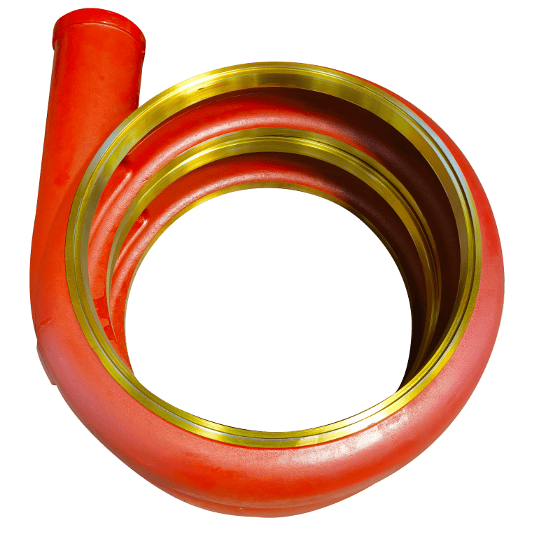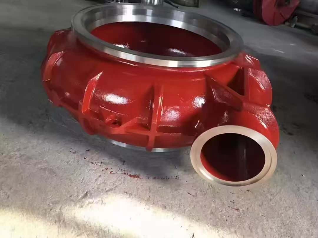 The shroud, also known as the volute, is an important component of the flow passage in slurry pumps. Common materials used for the shroud include high chromium alloy A05, wear-resistant and corrosion-resistant material A49, or rubber material R55. The shroud is a vulnerable part and is installed in conjunction with the front guard plate, impeller, rear guard plate, and guard plate seal gasket. Common foreign codes end with 110.